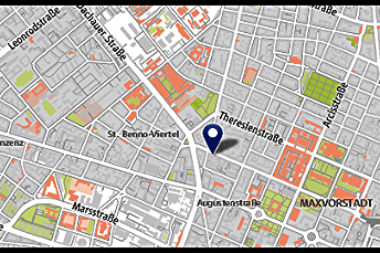 MVV: - Trambahn 20/21 bis Sandstraße/- U-Bahn (U1) bis Stiglmaierplatz/- U-Bahn (U2) bis Theresienstraße